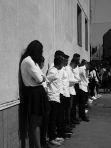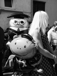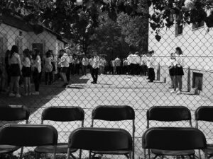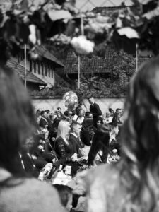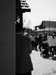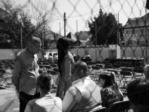 Do jisté míry mě zaujalo, jak rychle promoce skončila a vytvořila vakuum, zatímco se lidé začali vytrácet na focení a soukromé oslavy. Shon provozu školy evidentně vyžadoval, aby hřiště, na kterém se maturitní vysvědčení předávala, bylo záhy vyklizené. Stejně jako je tato událost liminálním rituálem pro studenty, kteří přecházejí z jedné etapy života do té další, navíc na prahu dospělosti, je toto liminálním rituálem pro školu, která se změní tím, že se zbaví další generace studentů. Není to přechodovým obdobím jen v dlouhodobém měřítku z hlediska školy, ale také v ten daný den z hlediska tohoto konkrétního místa. To prochází transformací, kdy musí být nejprve správně ozdobeno, na čemž si v Maďarsku potrpí. Na plotě hřiště věší šeříky a další větvičky, všude je spousta květin a stuh. Jakmile ale slavnost skončí, začne se místo uklízet, očišťovat. I když se místo nemění tak, že by přecházelo z jedné fáze před promocí do jiné fáze po promoci, během dne prochází mnoha liminálními chvílemi, kdy se místo transformuje, aby bylo připravené na slavnost, a poté na běžný provoz školy. Svým způsobem je tak v malém měřítku obrazem toho, čím procházejí i studenti.