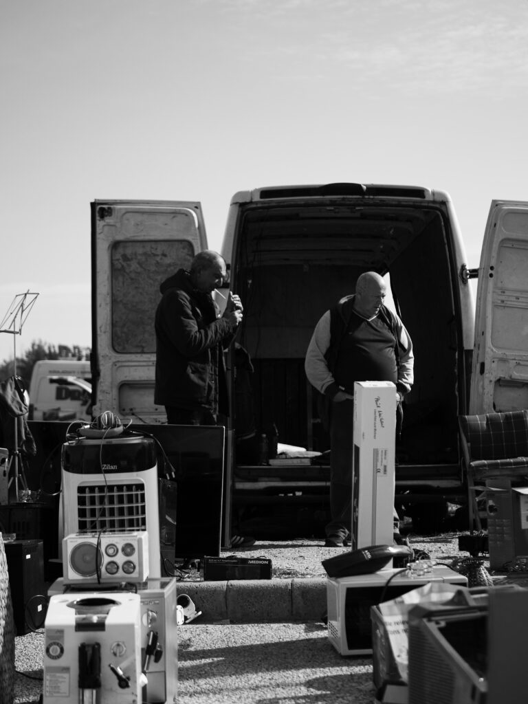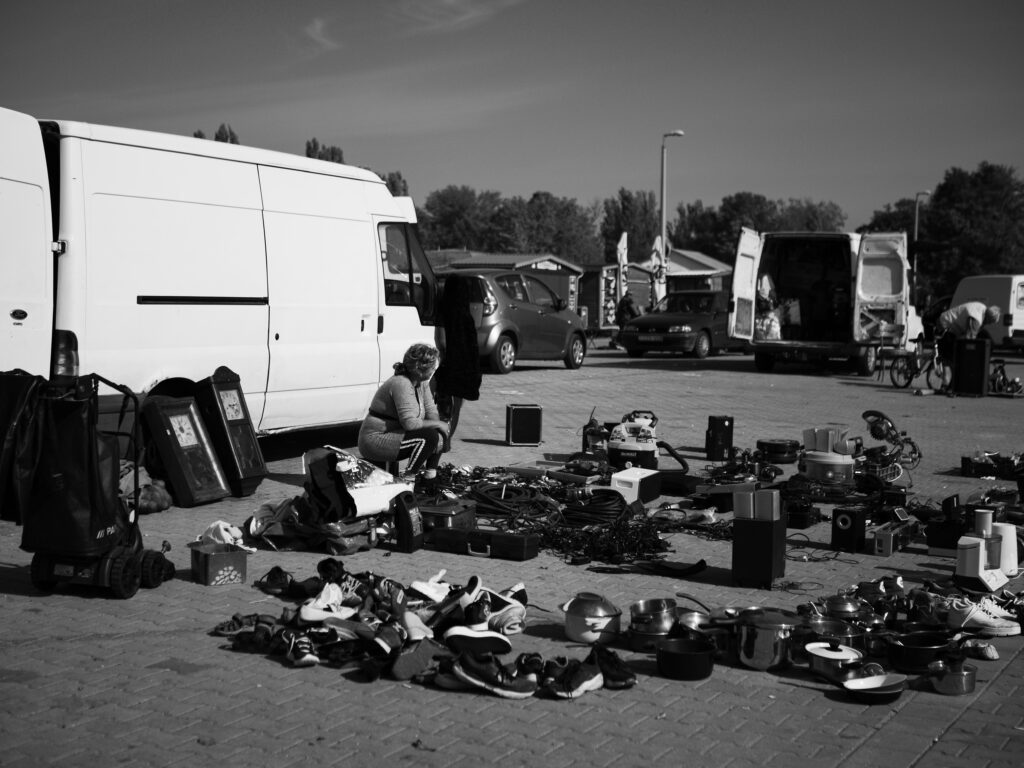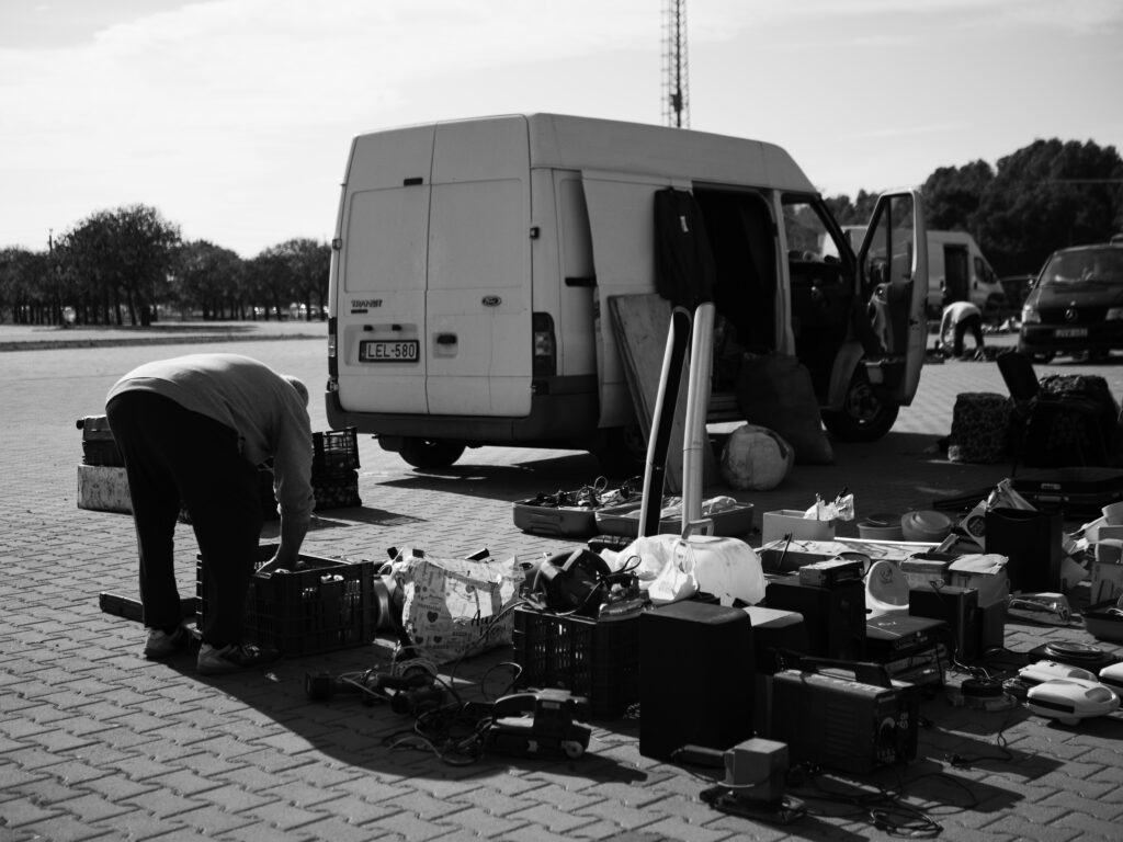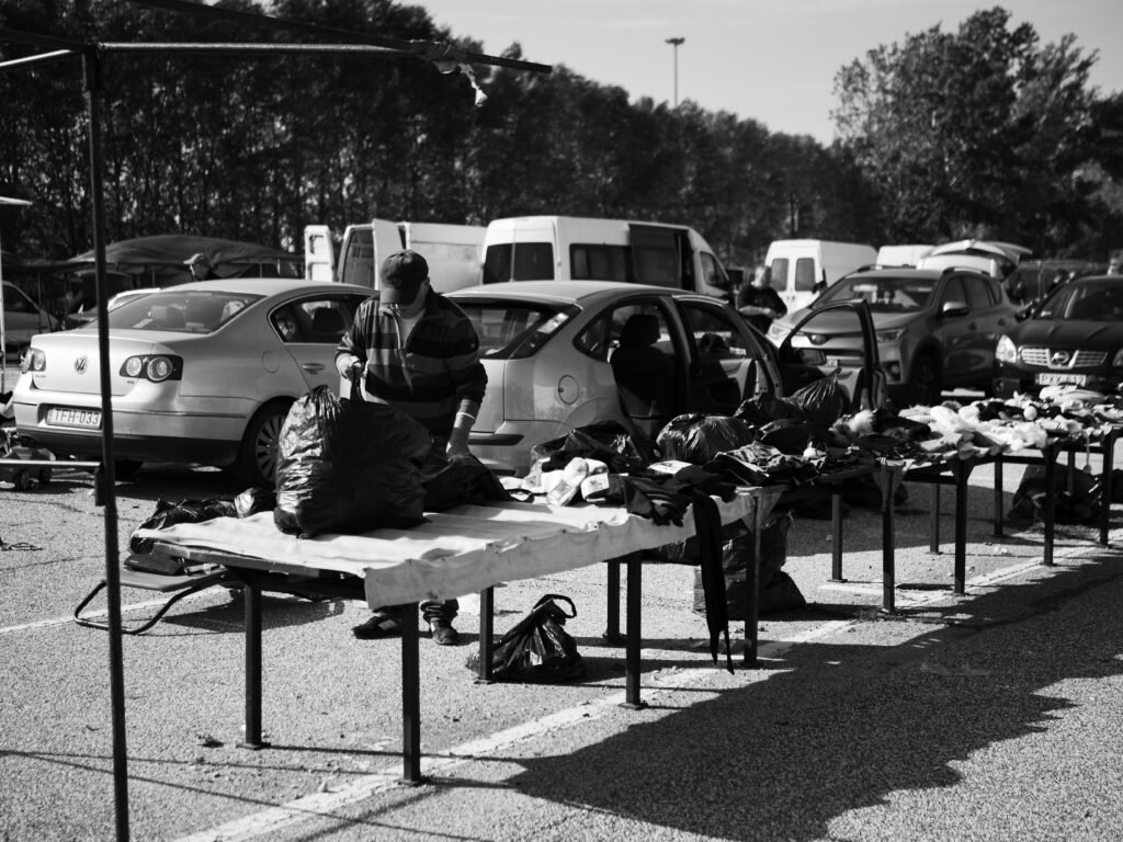 I went to one such market in the city of Kecskemét to photograph it and that is how this documentary series was created. It is a place where you can really get everything from supposed solar panels, old lamps and second-hand furniture, clothing of dubious brands and kitchen equipment to car parts and plastic toys. In short, there is nothing I would rather buy there than a langos at a snack stall.